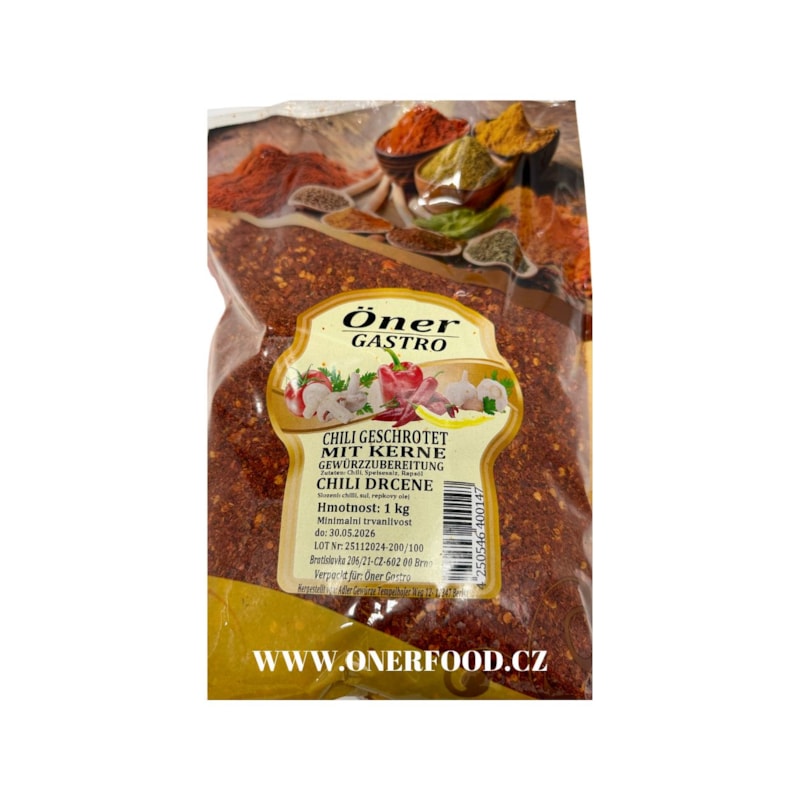 Kvalitní chilli koření určené pro restaurace, kebab provozy, pizzerie a velkokuchyně. Balení 1 kg je vhodné pro provozy s vyšší spotřebou.